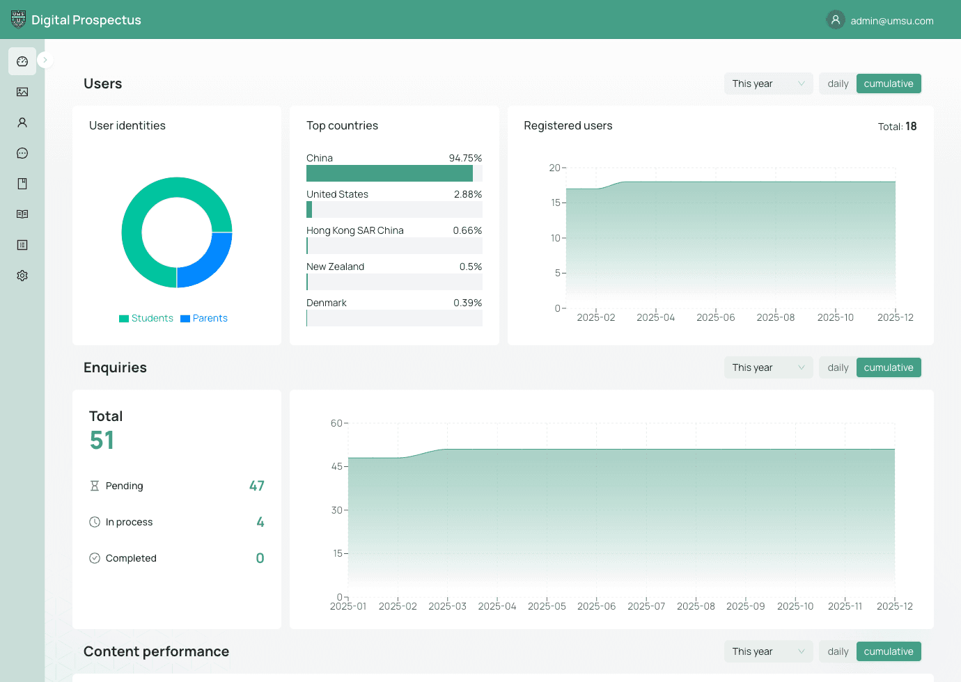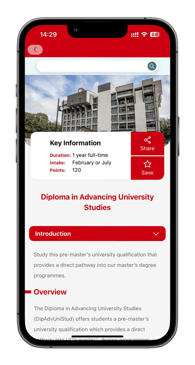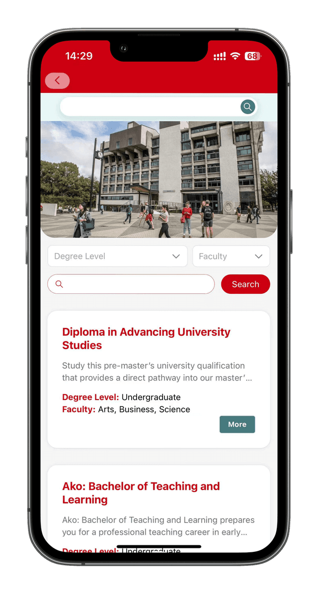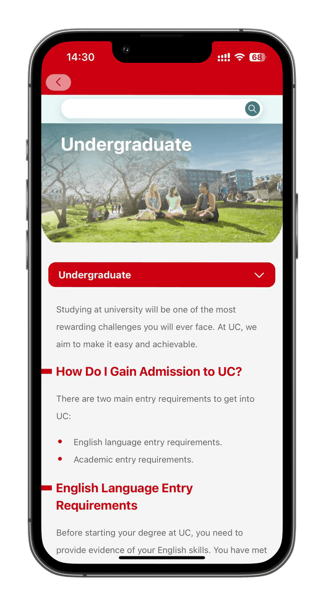 UMS helped the University of Canterbury transform its traditional prospectus into a personalised, mobile-first digital solution — available via microsite and WeChat Mini Programme. The platform enhances the student journey with smart search, comparison, and enquiry features, while providing UC with real-time insights into student behaviour and program demand to drive informed recruitment strategies.