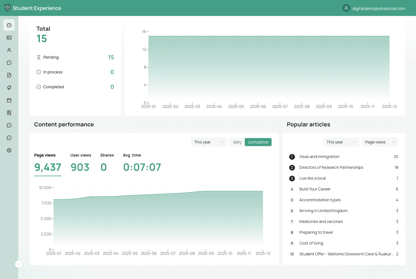 Enhance student engagement with the innovative UMS Student Experience Platform, a mobile-first platform for international students. Address key challenges like culture adjustment, career readiness, and well-being through peer-to-peer engagement and insights. Empower your institution to foster belonging, streamline support, and strengthen your global reputation. Get started today!