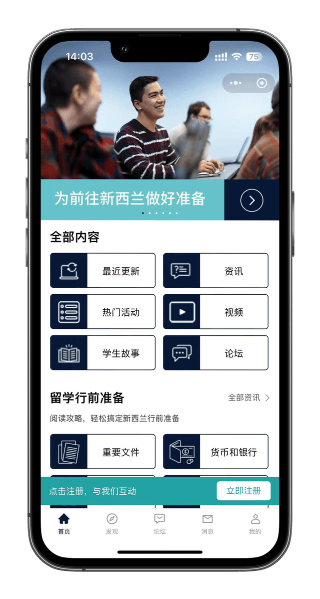 Education New Zealand (ENZ) partnered with UMS to launch the NauMai NZ WeChat Mini Programme — the first government-led platform dedicated to international student wellbeing. Tailored for Chinese students, it provides a one-stop digital hub with information, events, and interactive features, connecting over 12,000 users across New Zealand and China.